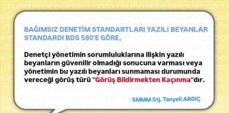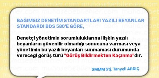BAĞIMSIZ DENETİM STANDARTLARI YAZILI BEYANLAR STANDARDI BDS 580’E GÖRE,