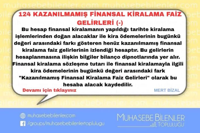 124 KAZANILMAMIŞ FİNANSAL KİRALAMA FAİZ GELİRLERİ (-)
