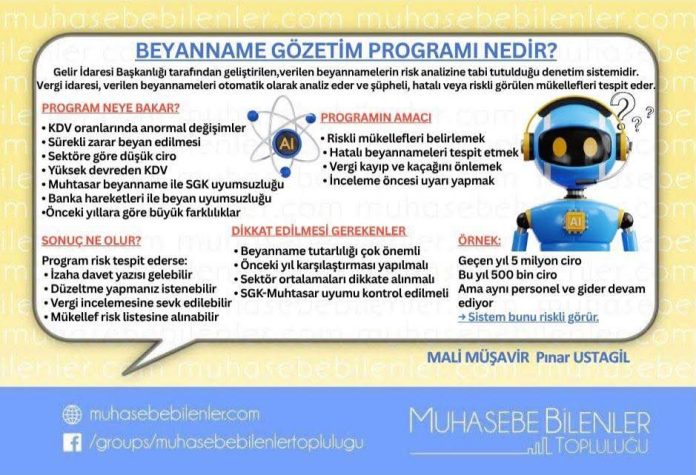 Vergi idaresi, verilen beyannameleri otomatik olarak analiz eder ve şüpheli, hatalı veya riskli görülen mükellefleri tespit eder.