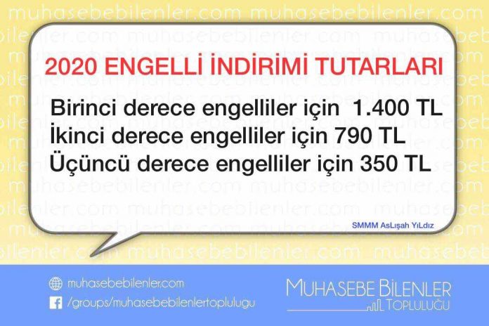 | 2020 yılı aylık ve yıllık engellilik indirimi tutarları ve sağlanan vergi avantajı | ||