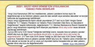 Etiket: 2022/1. GEÇİCİ VERGİ DÖNEMİ İÇİN UYGULANACAK YABANCI PARA DEĞERLERİ