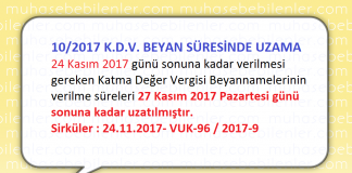 10/2017 K.D.V. BEYAN SÜRESİNDE UZAMA