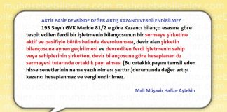 Etiket: AKTİF PASİF DEVRİNDE DEĞER ARTIŞ KAZANCI VERGİLENDİRİLMEZ