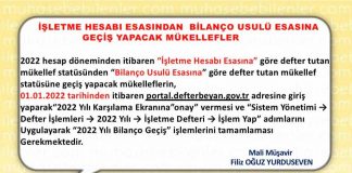 Etiket: DBS İŞLETME HESABI ESASINDAN BİLANÇO USULÜ ESASINA GEÇİŞ YAPACAK MÜKELLEFLER
