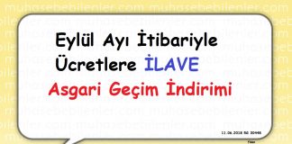 Eylul Ayi İtibariyle Ücretlere İLAVE Asgari Gecim İndirimi