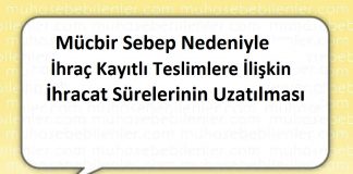 Mücbir Sebep Nedeniyle İhraç Kayıtlı Teslimlere İlişkin İhracat Sürelerinin Uzatılması