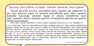 Sosyal güvenlik kurumu mevzuatına göre, sigortalı işçi çalıştırılan bir işin veya işyerinin başka bir işverene devredilmesi işyeri devri, işyerinin faaliyette bulunduğu adresten başka bir...
