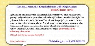 Kıdem Tazminatı Karşılıklarının Giderleştirilmesi (Fiili Ödeme Şartı)