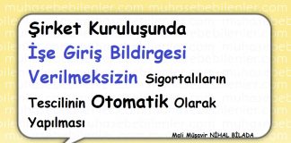 Sirket Kurulusunda İse Giris Bildirgesi Verilmeksizin Sigortalilarin Tescili Otomatik Olarak Yapilacaktir