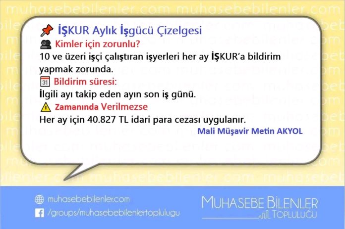 📌 **İŞKUR Aylık İşgücü Çizelgesi **