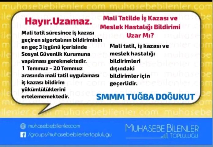 2 Temmuz – 20 Temmuz arasında mali tatil uygulaması iş kazası bildirim yükümlülüklerini ertelememektedir.