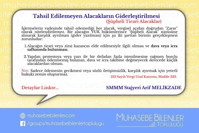 Tahsil Edilemeyen Alacakların Giderleştirilmesi (Şüpheli Ticari Alacaklar)