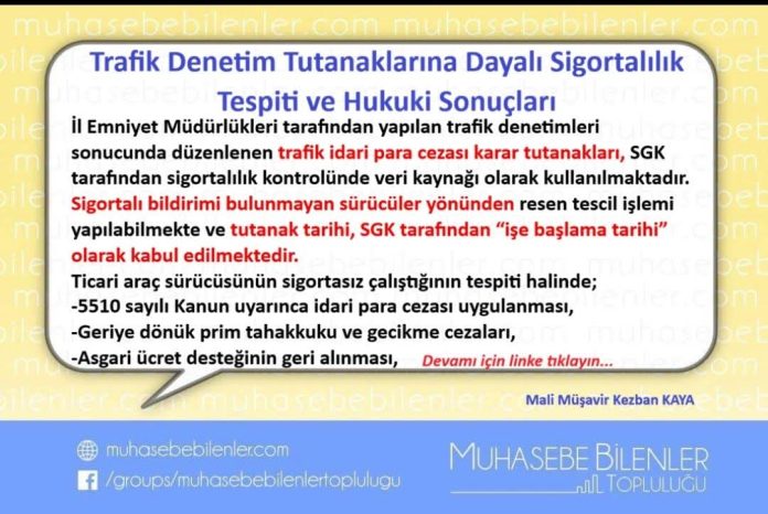 İl Emniyet Müdürlükleri tarafından yapılan trafik denetimleri sonucunda düzenlenen trafik idari para cezası karar tutanakları, SGK tarafından sigortalılık kontrolünde veri kaynağı olarak kullanılmaktadır.