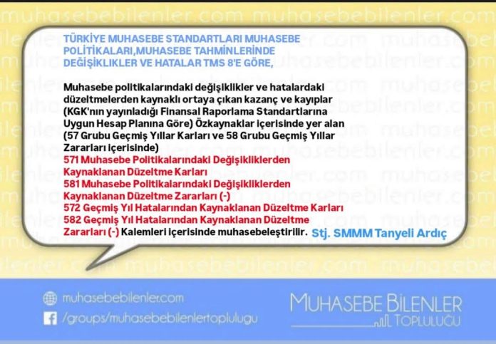 Muhasebe politikalarındaki değişiklikler ve hatalardaki düzeltmelerden kaynaklı ortaya çıkan kazanç ve kayıplar (KGK’nın yayınladığı Finansal Raporlama Standartlarına Uygun Hesap Planına Göre) Özkaynaklar içerisinde yer alan (57 Grubu Geçmiş Yıllar Karları ve 58 Grubu Geçmiş Yıllar Zararları içerisinde)