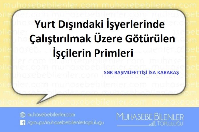 Yurt Dışındaki İşyerlerinde Çalıştırılmak Üzere Götürülen İşçilerin primleri